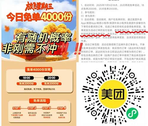 塔斯汀免单4000份,最高免25 美团 塔斯汀 先到先得兔单