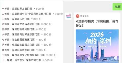 #公众号:文旅深圳 如图所示 回复:免票 可抽1万份景点门票 11.6号开