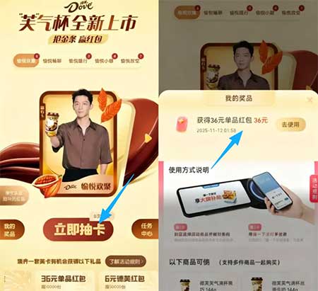 去做任务集卡 集成有1次机会 可抽1万份德芙36-36红包