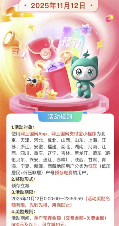 仅限今日,网上国网预存500-10