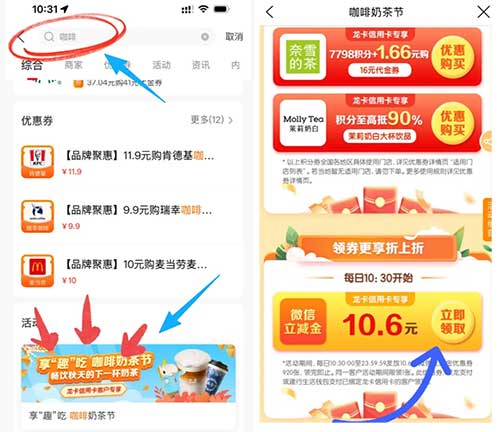 2️⃣虽然写的是奶茶立减,实际是通用的