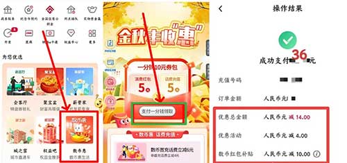 1分钱买数币红包再去充话费有,联通电信可以50起充